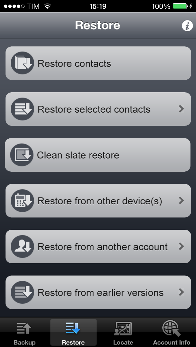 Para restaurar os contatos basta instalar este mesmo aplicativo (iDrive Lite) em um outro celular (iPhone / Blackberry / Android)