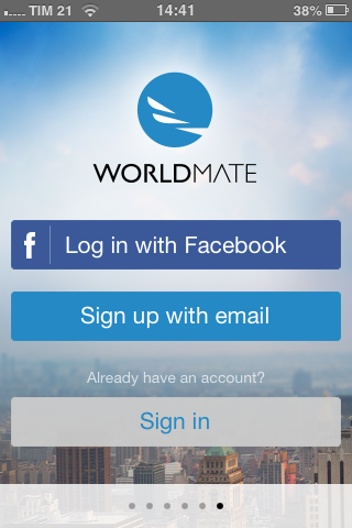 Informe seu email e sua senha cadastrada no passo anterior na tela “Sign in to WorldMate” e pressione o botão “Start using WorldMate”